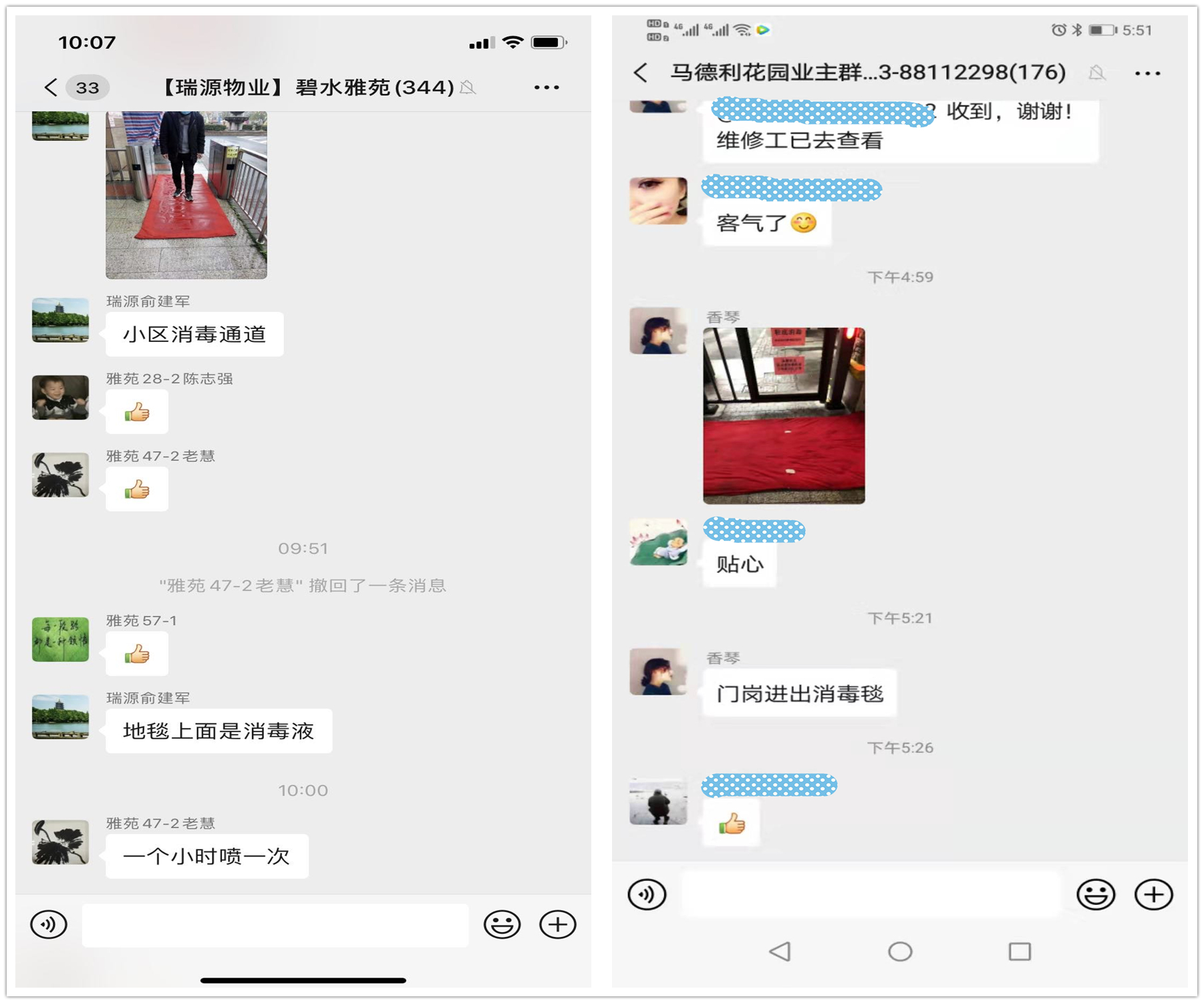 在防控疫情的道路上,瑞源物业对业主家人们的细心周全,得到了业主们的纷纷点赞,不仅有电梯一次性按键纸巾,还有消毒地毯。
