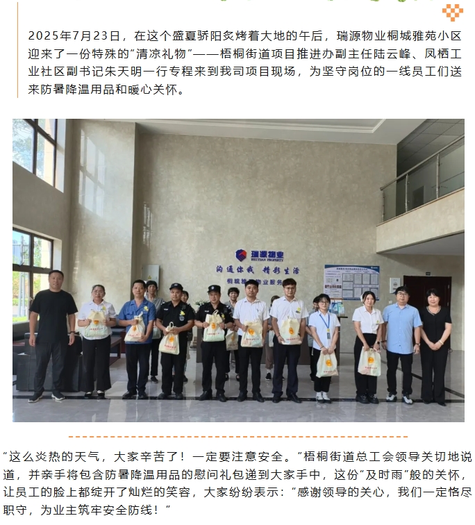 烈日下的关怀:梧桐街道总工会高温慰问暖人心