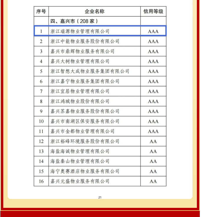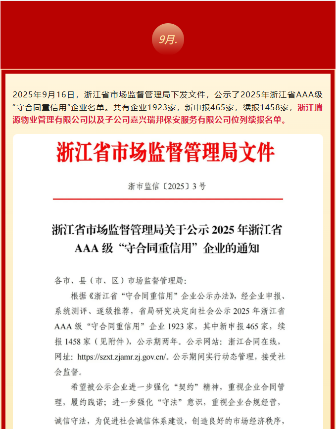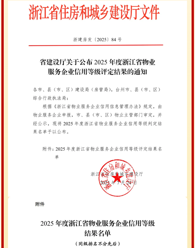 省首批AA级物业服务信用企业